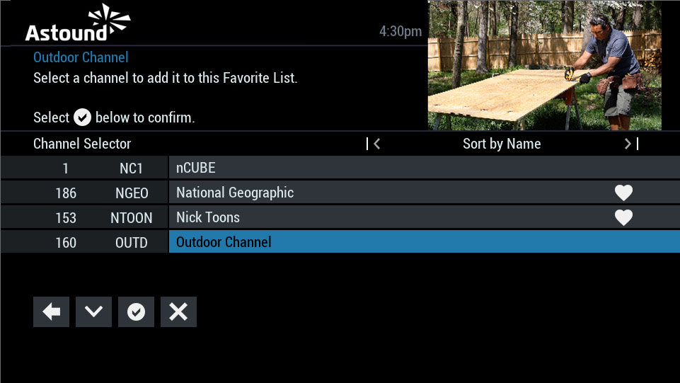 - Highlight and select channels to add to the Favorite Channels List