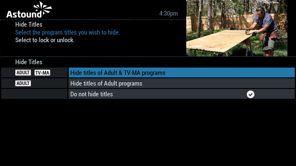 - Purchase PIN: restricts viewers from ordering anything that requires a purchase
